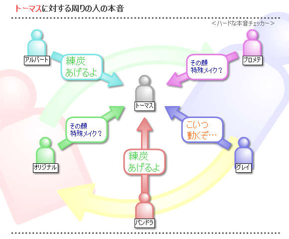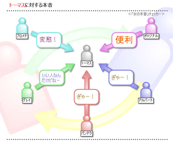 毛玉脳内のプロメテは「アルバート不幸になれ!!」とか思いつつ、トーマスがアルバートたんハァハァ(´Д`;)って迫ってきたら助けに来そうな感じ。
